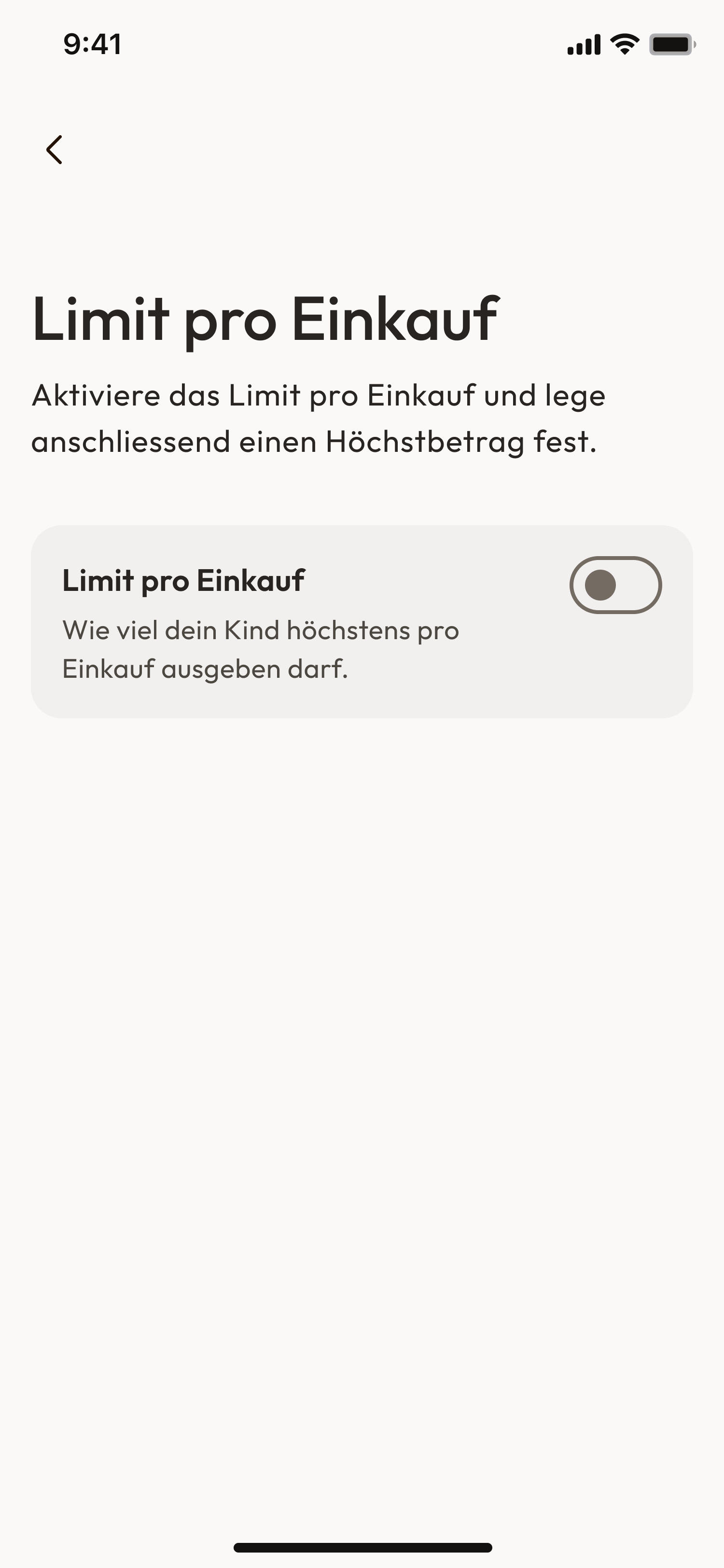 Limit pro Einkauf - wie viel dein Kind höchstens pro Einkauf ausgeben darf.