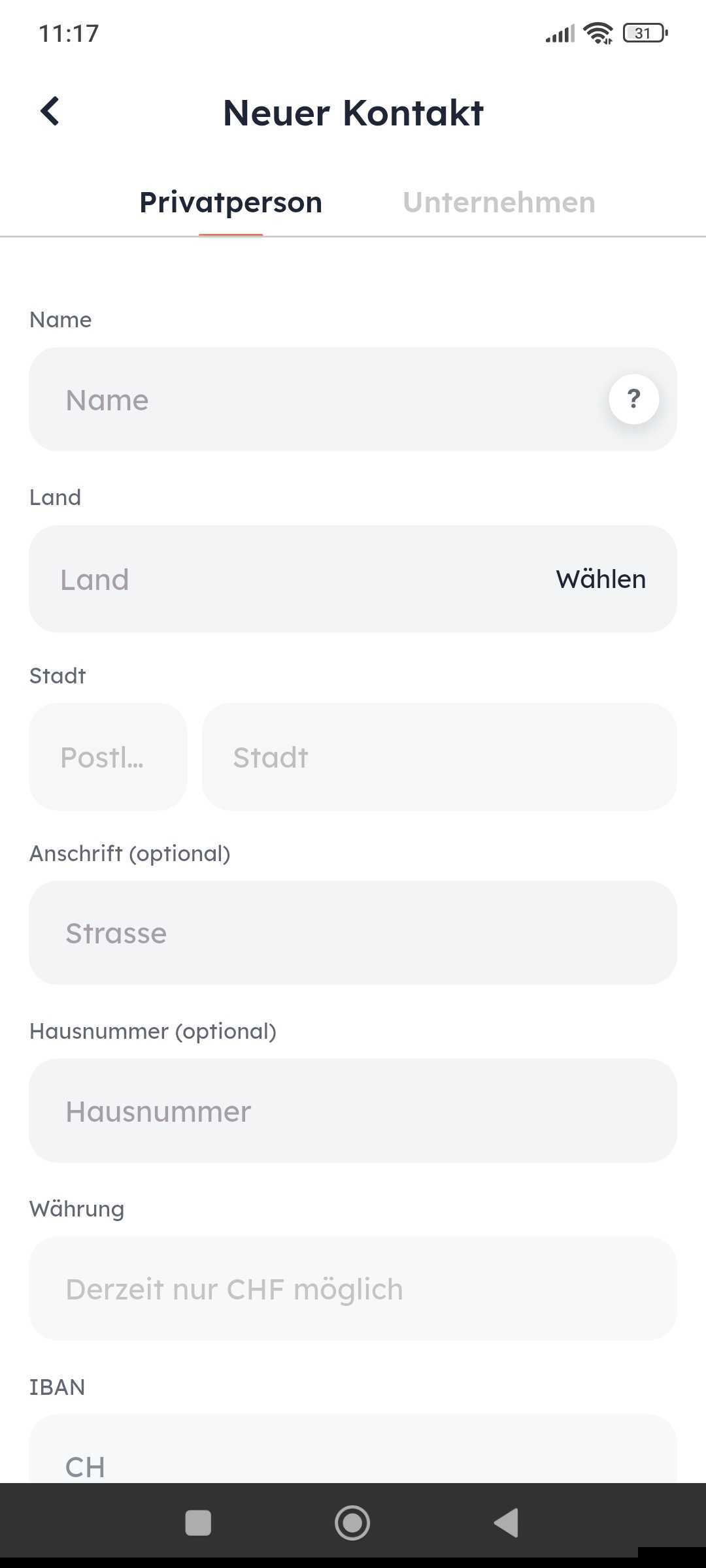 Du hast die Möglichkeit auf verschiedene Arten dein Geld zu versenden, bzw. zu überweisen. Als Grundstein dafür dient in jedem Fall ein hinzugefügter Empfänger. Von dir werden folgende Daten abgefragt: