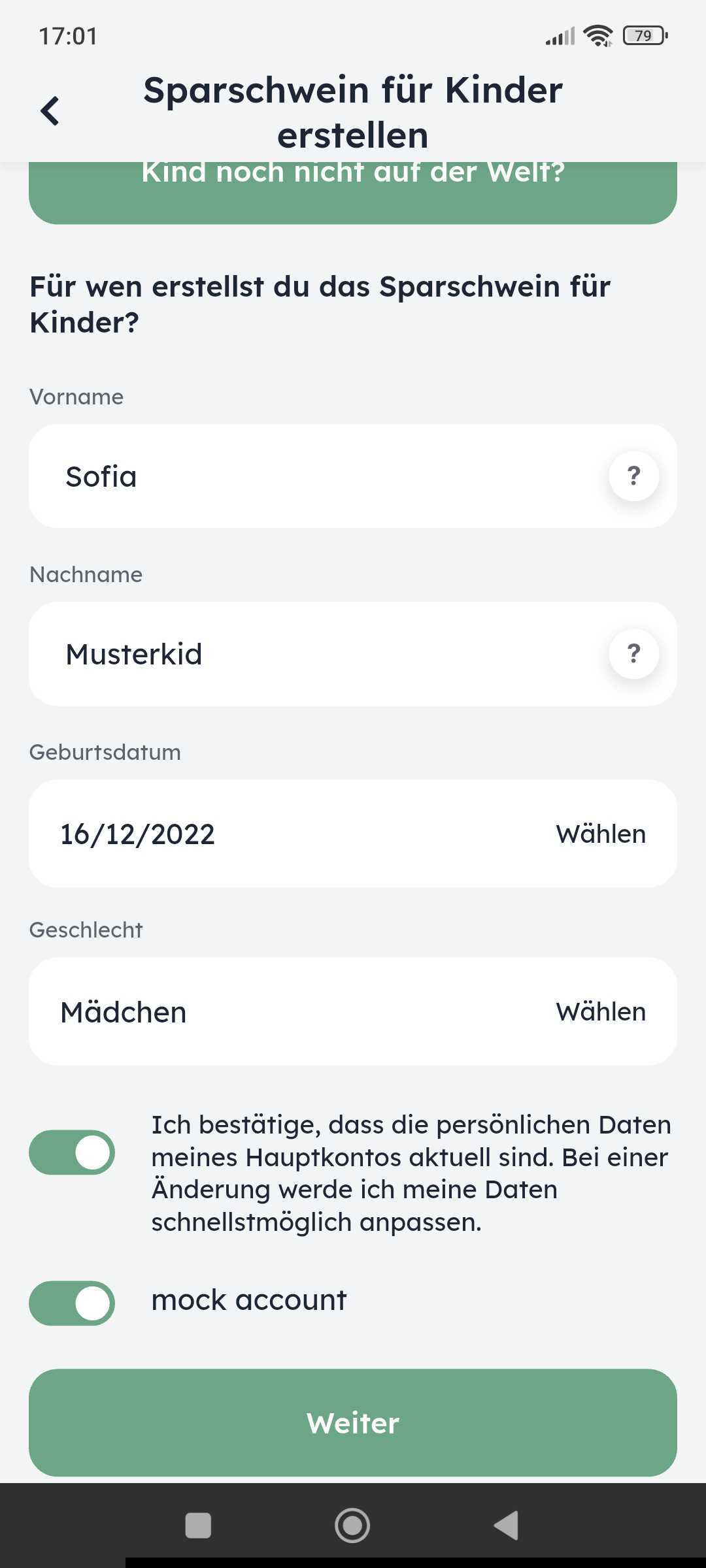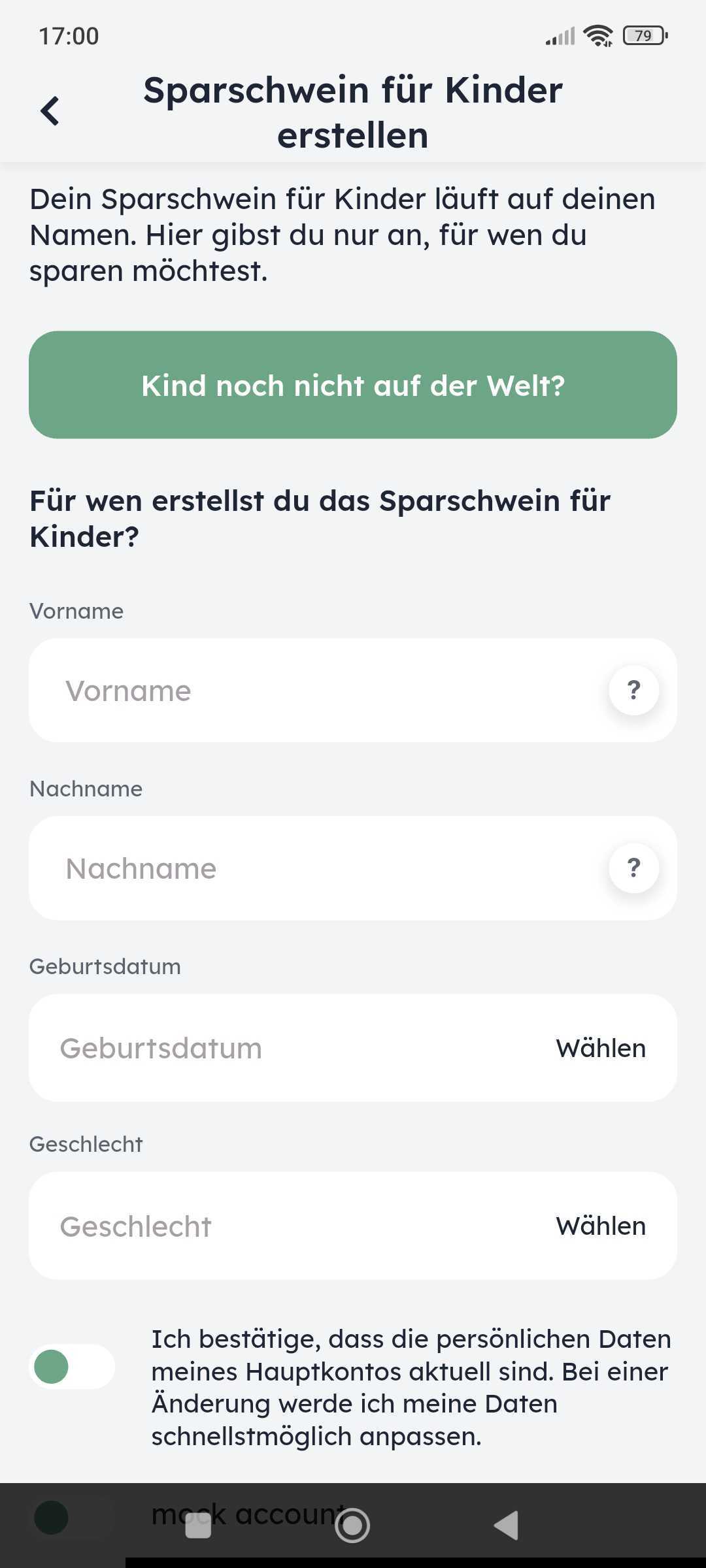 Für die Kontoeröffnung benötigen wir folgende Daten von deinem Kind: