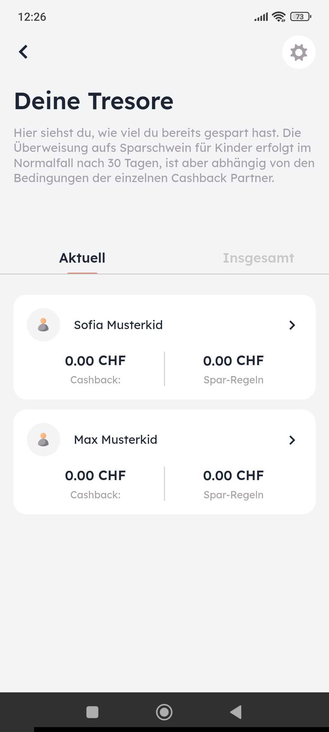 - Aufgelaufener Cashback der aktuellen Periode nach Kind