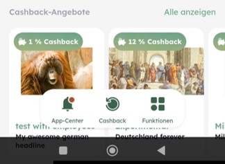 Klicke in deinem Clanq Konto auf das Cashback-Zeichen unten oder wische einfach nach rechts und wähle die Option "Cashback ansehen".