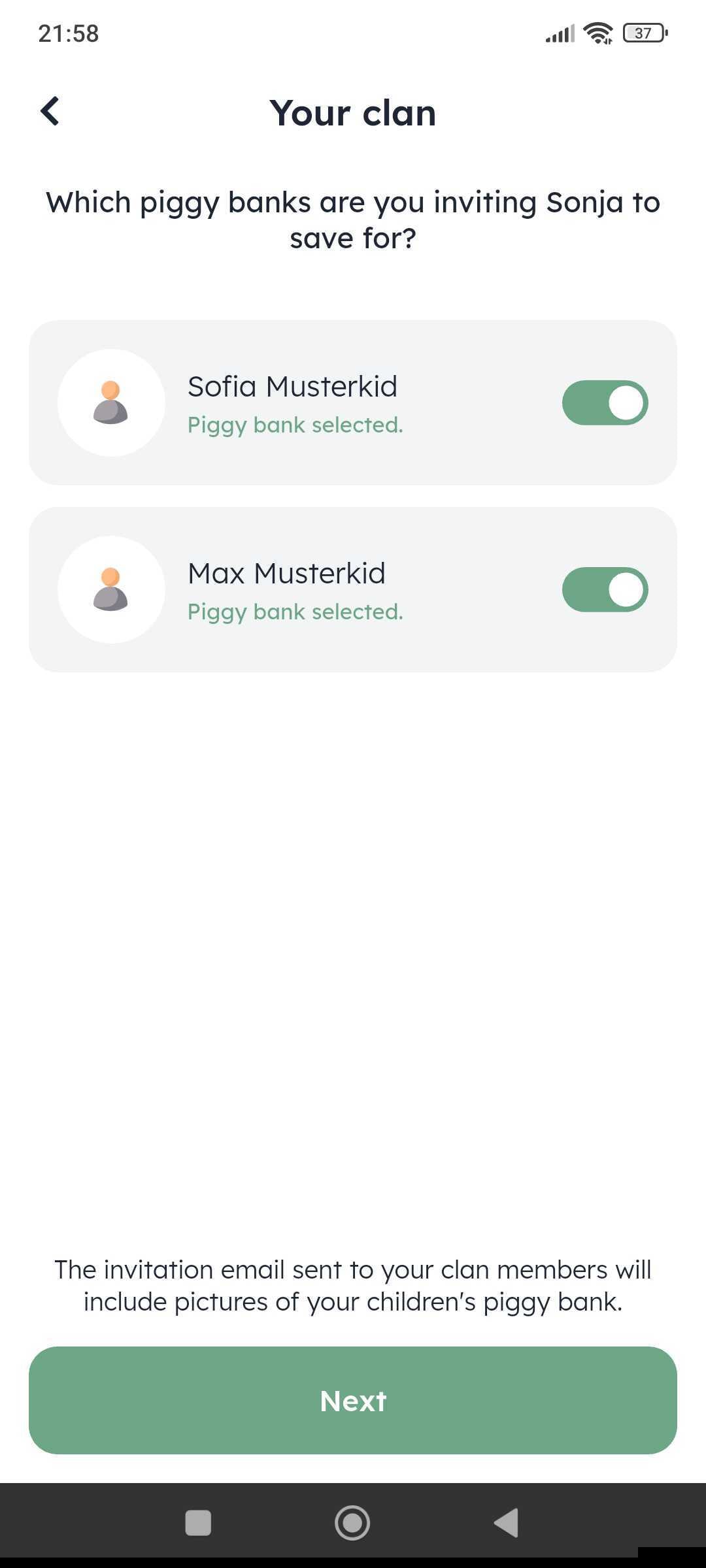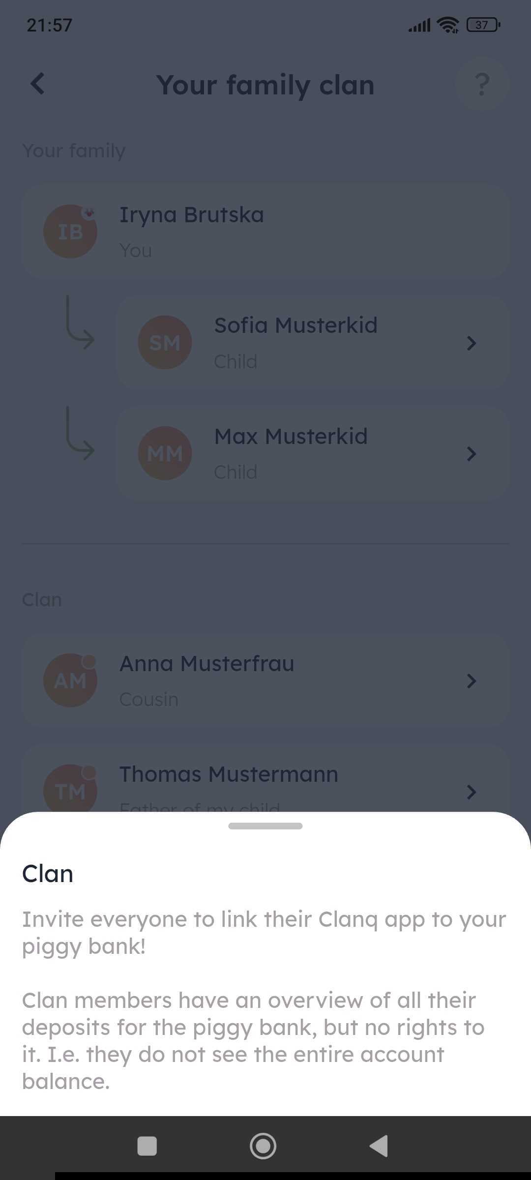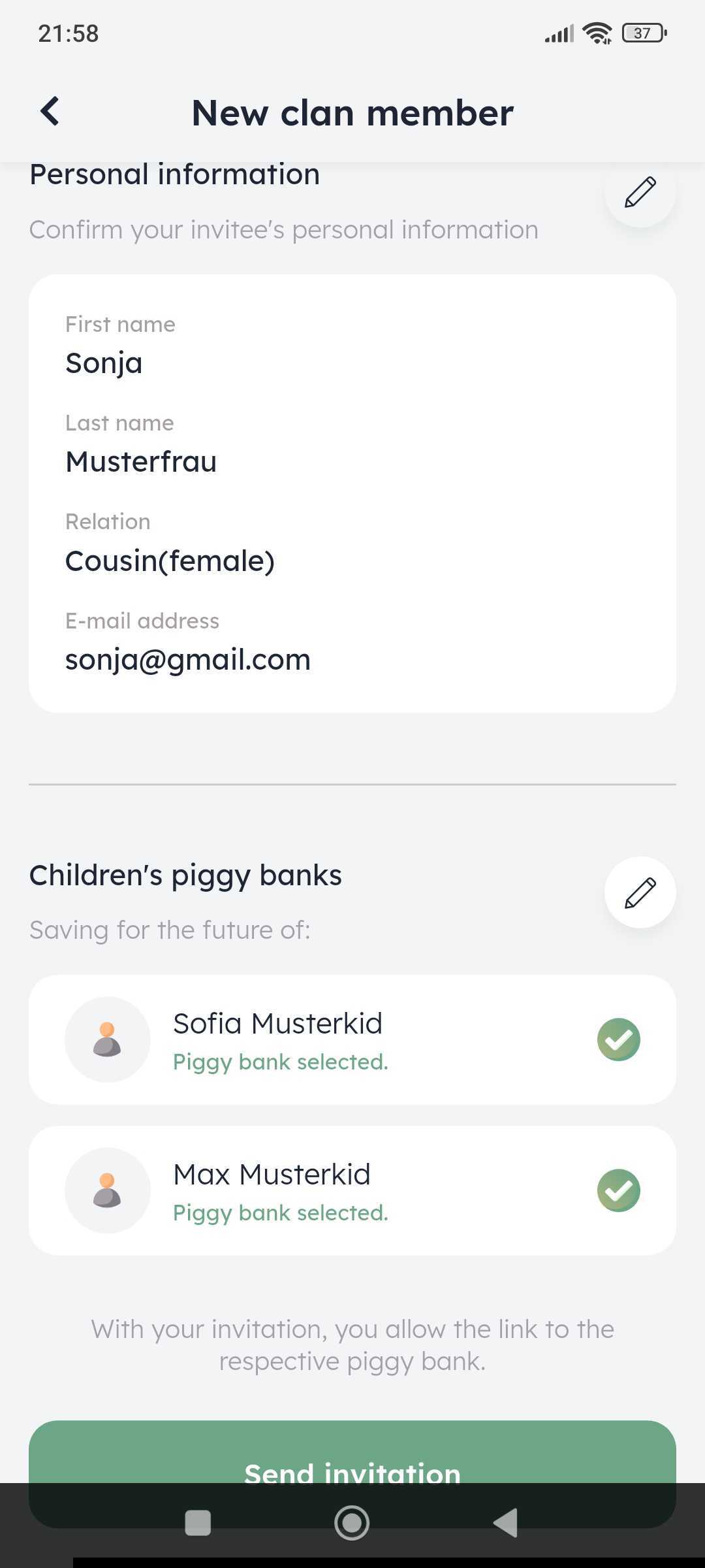 Tap on “My Family” in Functions. Here you can invite as many members to your clan or your close family as you want. The person you invite will be notified by email and can accept your invitation.