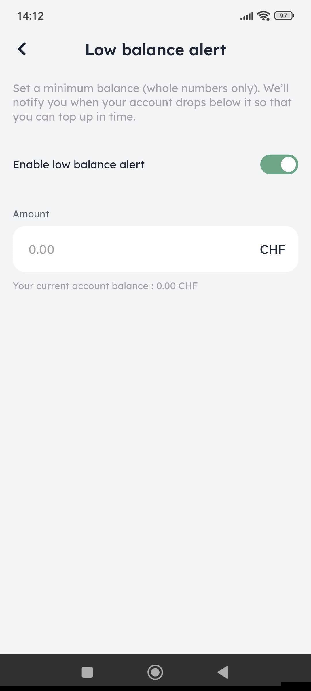 Set the amount you don’t want to fall below in your account settings. We’ll remind you in good time via push notifications on your phone to top up your Clanq account.
