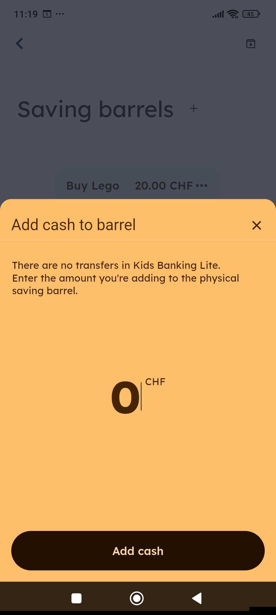 Here you can also enter the cash that you give your child for saving.