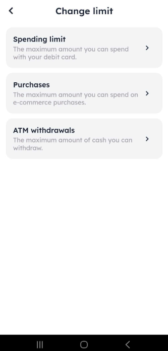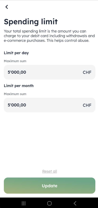 You can set individual limits for your payment card so that you always have enough money in your account. Think about your budget and what amounts make sense for you. You can set the limit for your spending on your Clanq card as well as for ATM withdrawals. Simply click on the card symbol at the bottom of the app and change your limits.