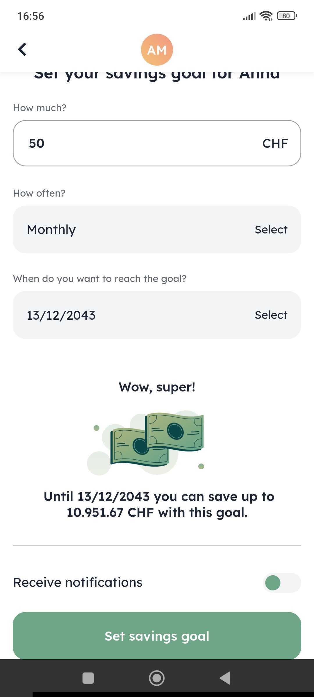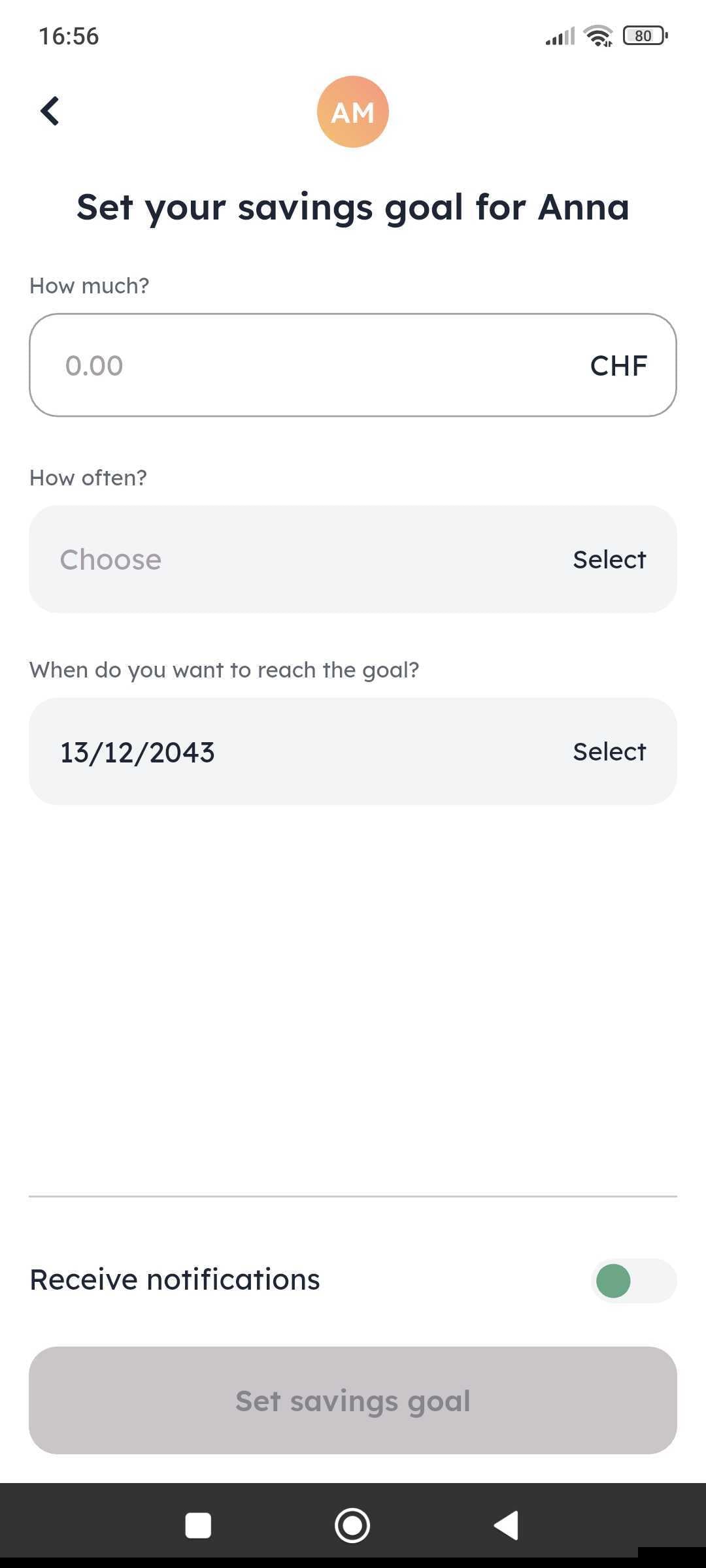 You can enter a savings target for each of your piggy banks. You will find the savings goals under the respective piggy bank.