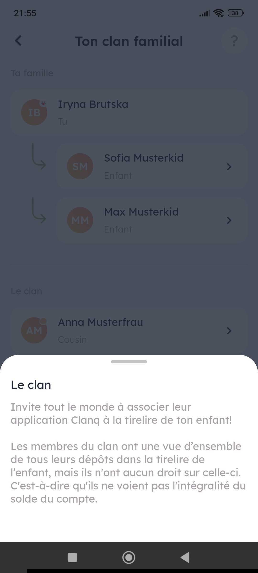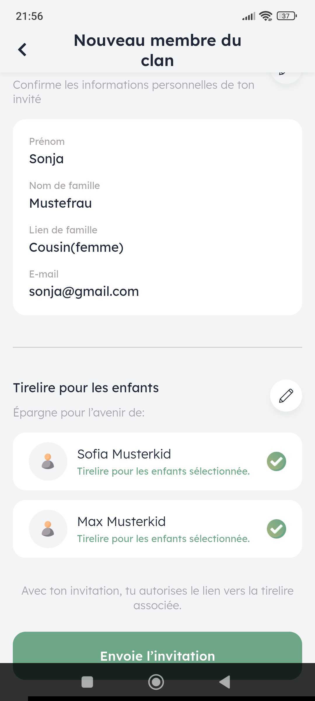 Dans les fonctions, tape sur « Ma famille ». Ici tu peux inviter autant de membres à ton clan ou à ta famille proche que tu veux. La personne invitée recevra une notification par e-mail et pourra accepter ton invitation.