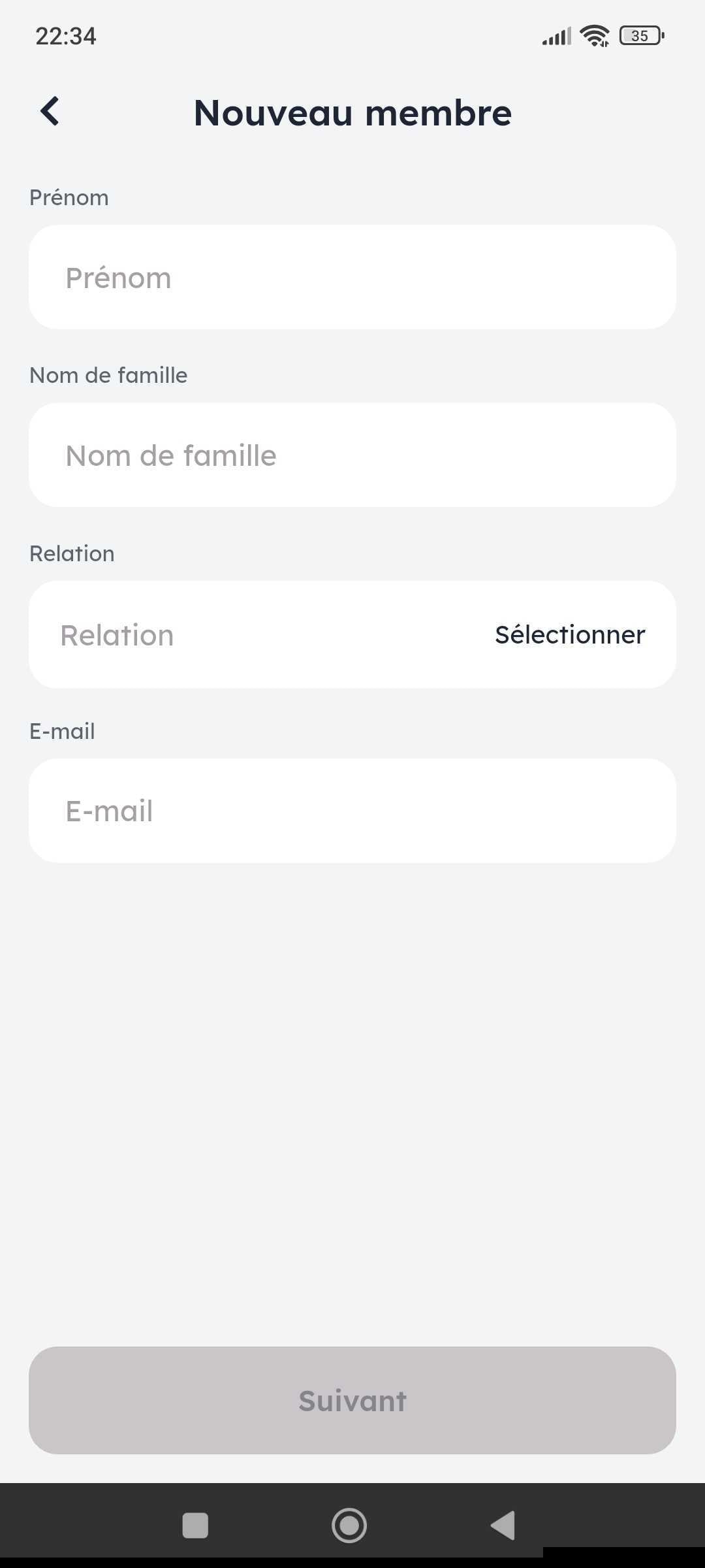 Indique les infos de ton membre de famille.