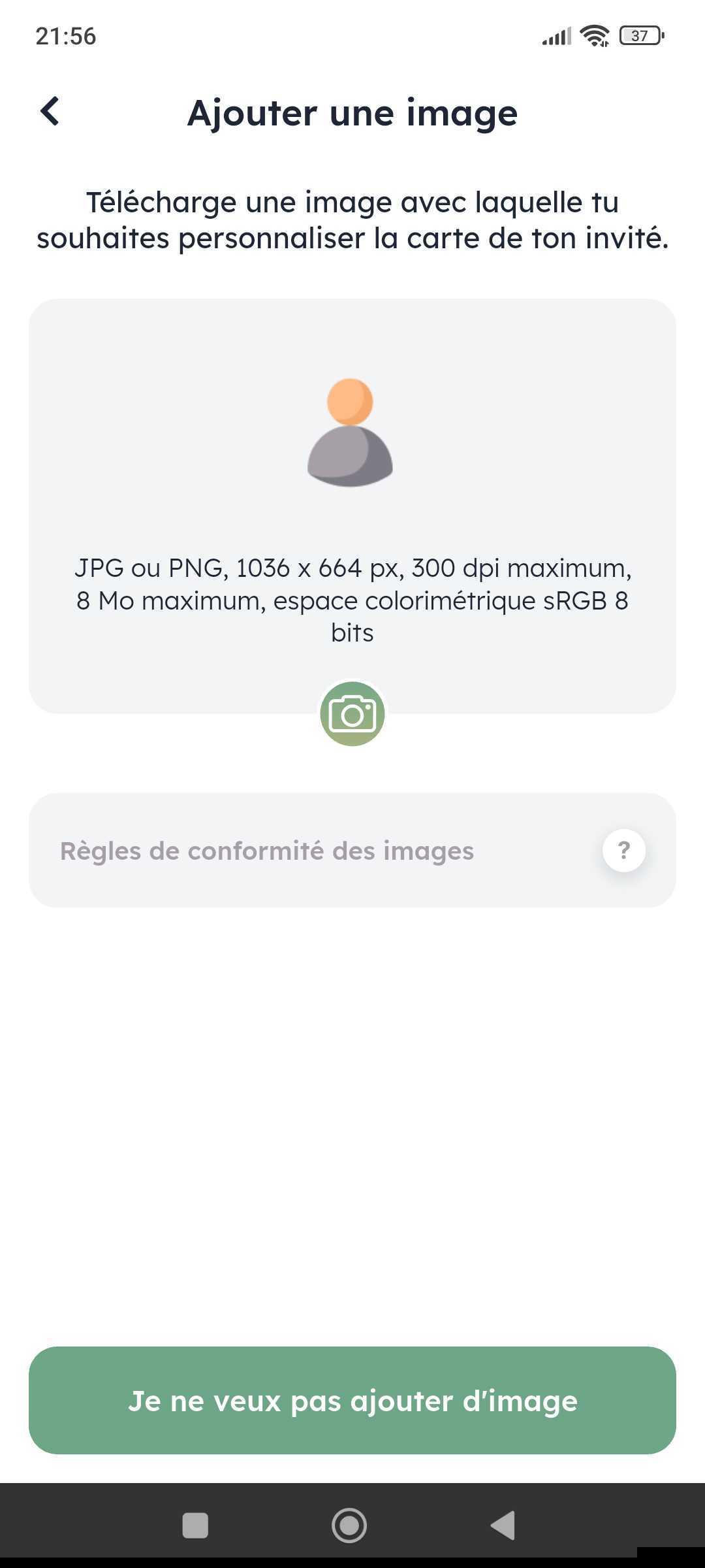 Ici, tu peux aussi personnaliser la carte de ton invité·e avec une image.