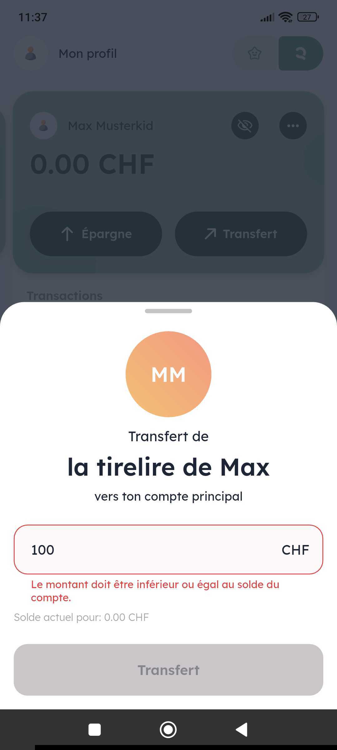 Tu ne peux pas transférer plus de cette tirelire que ce qu'il y a dessus. Le montant doit être inférieur ou égal à