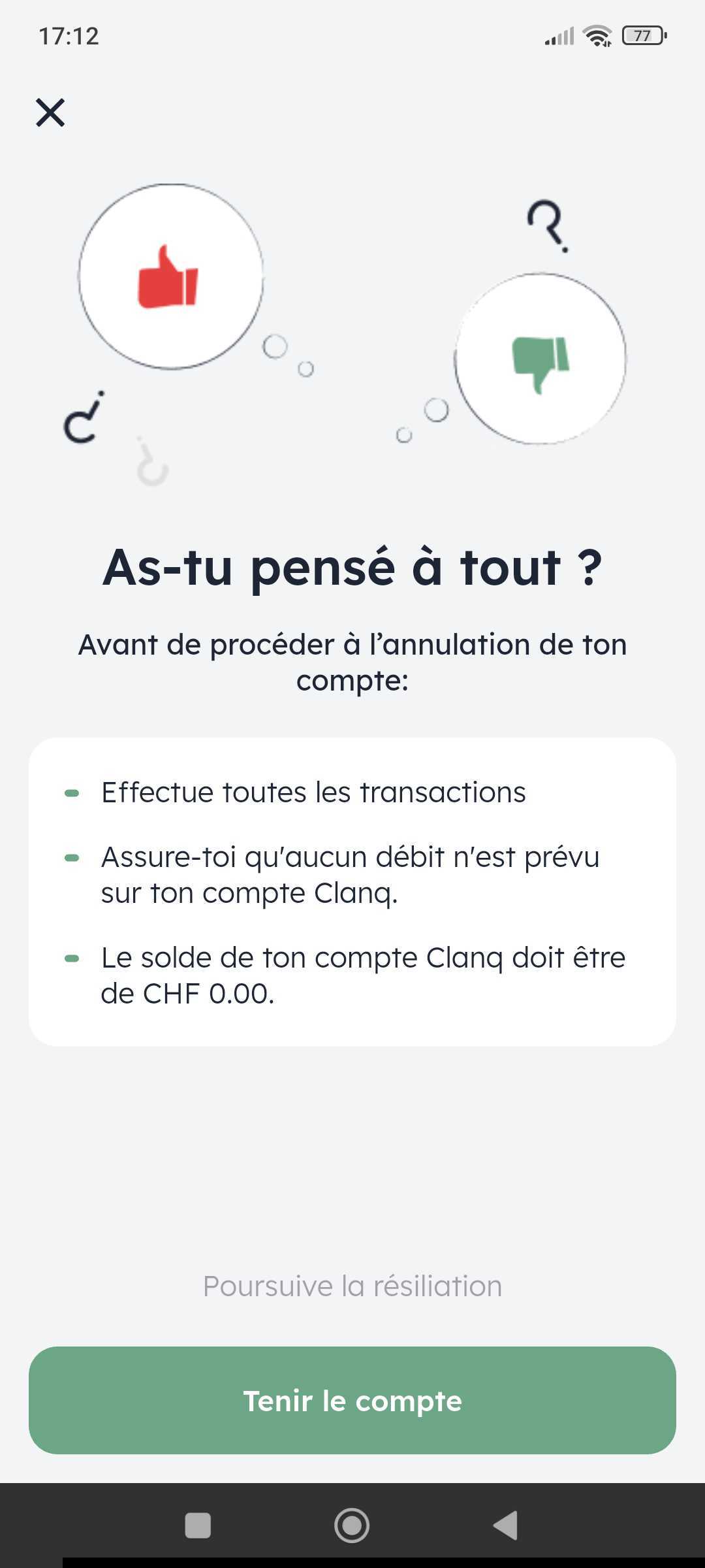 - Aucun prélèvement n'est prévu sur ton compte Clanq