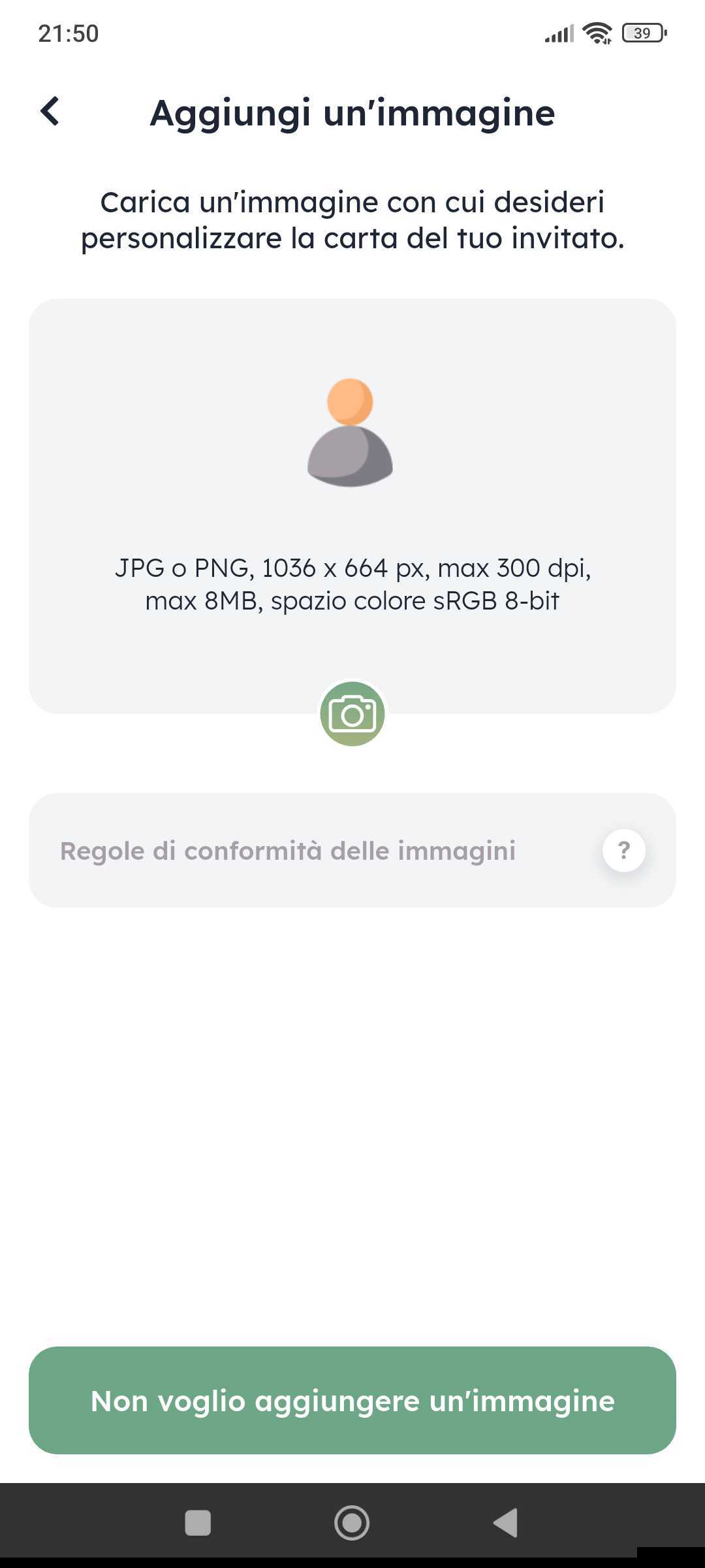 Qui puoi anche personalizzare la carta del tuo invitato con una foto.