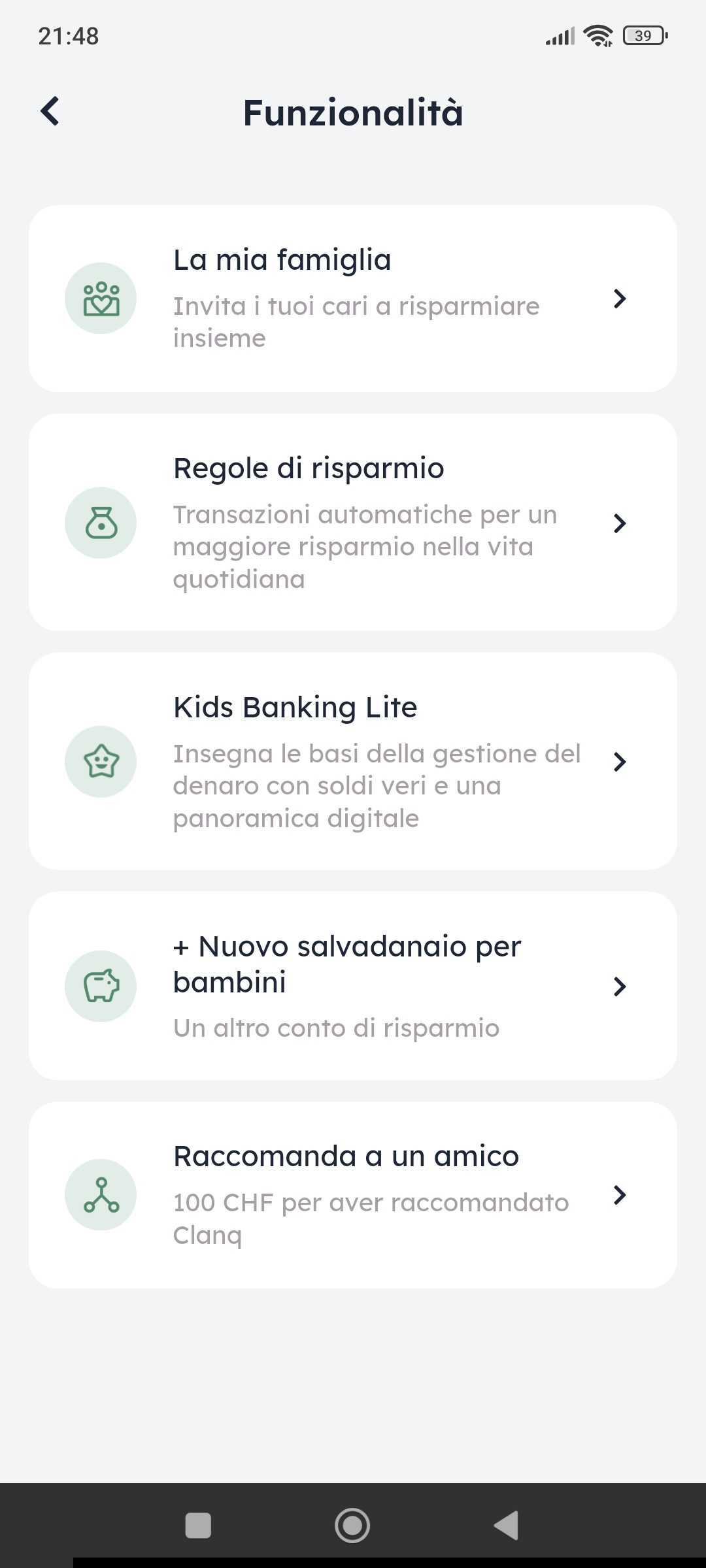 Clicca nel tuo profilo Clanq sul pulsante “Funzionalità” in basso a destra.