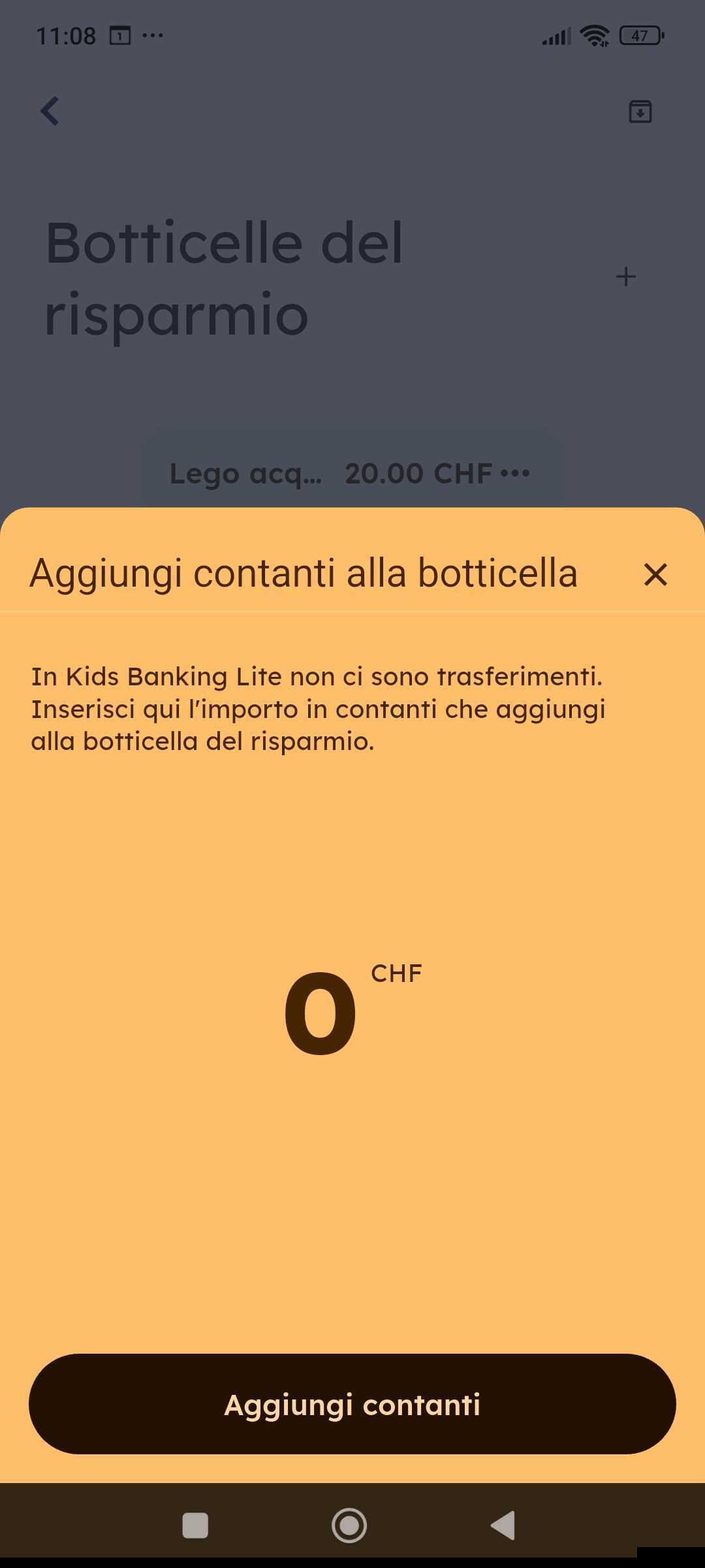 Qui puoi anche aggiungere i contanti che dai a tuo figlio per il risparmio.