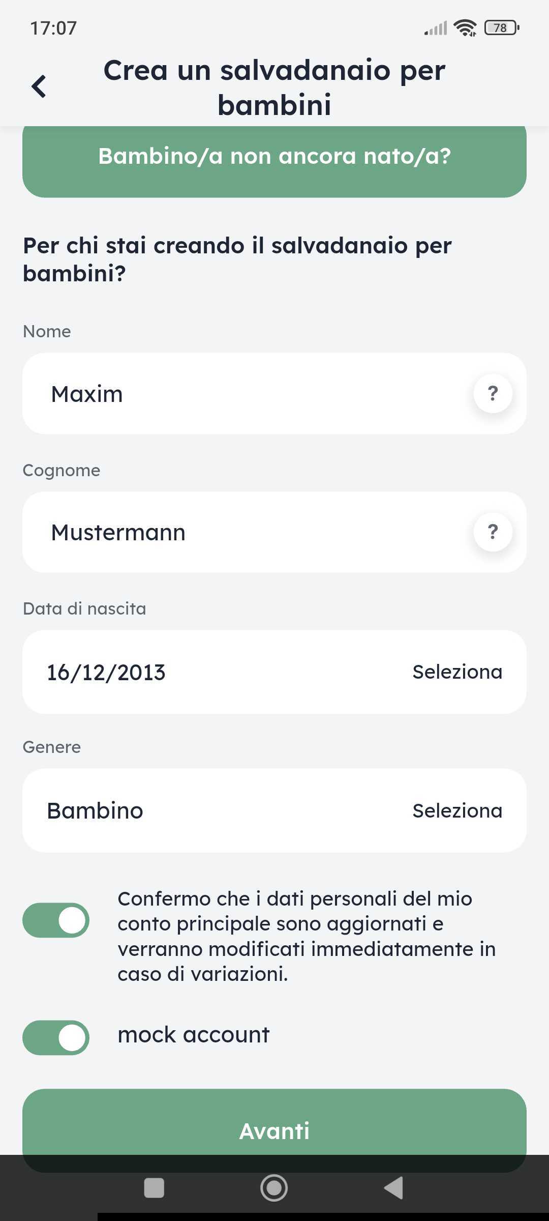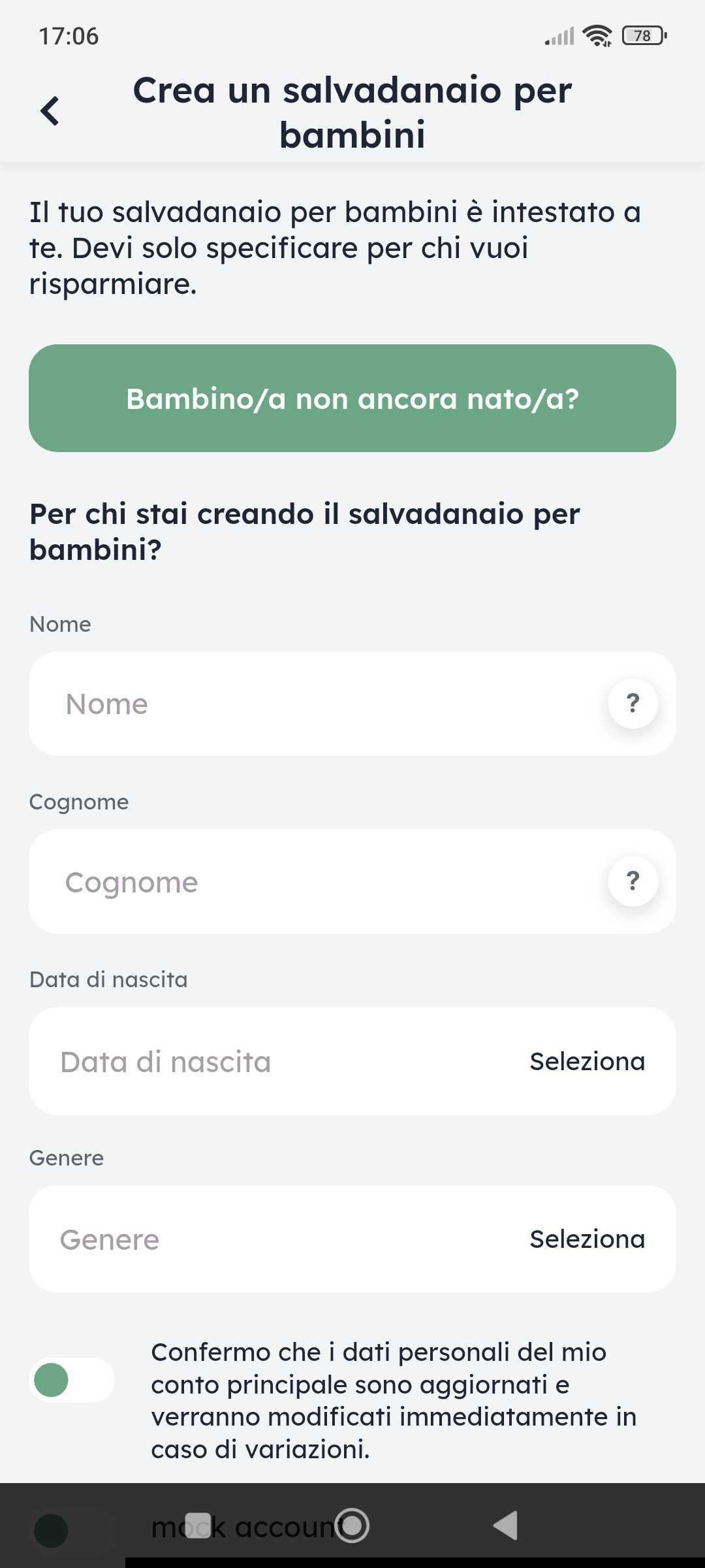 Per aprire un conto abbiamo bisogno dei seguenti dati di tuo/a figlio/a: