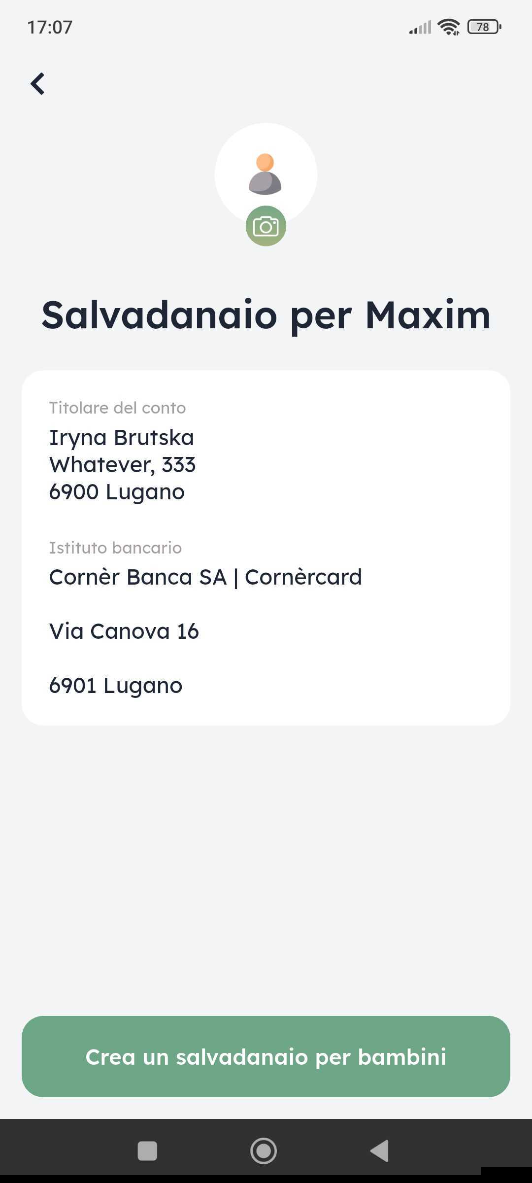 Alla fine, sullo schermo appariranno i dati del conto del nuovo salvadanaio.